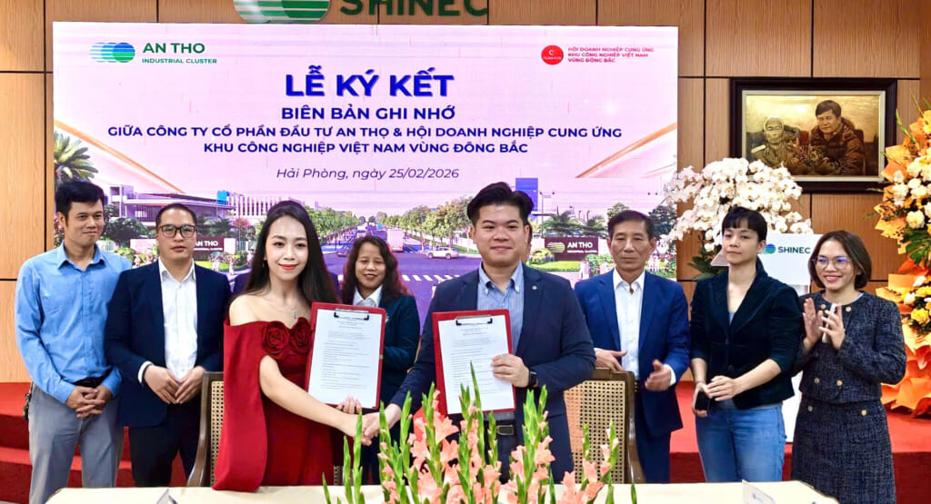 Bên cạnh đó, việc ký kết Biên bản ghi nhớ hợp tác với Hội Doanh nghiệp Cung ứng Khu Công nghiệp Việt Nam Vùng Đông Bắc mở ra kênh kết nối trực tiếp giữa chủ đầu tư hạ tầng và cộng đồng doanh nghiệp cung ứng. Thông qua liên kết này, CCN An Thọ sẽ từng bước hình thành hệ sinh thái dịch vụ đầy đủ từ xây dựng, logistics, môi trường đến tài chính – tạo điều kiện thuận lợi cho các nhà đầu tư thứ cấp triển khai dự án nhanh chóng và hiệu quả.